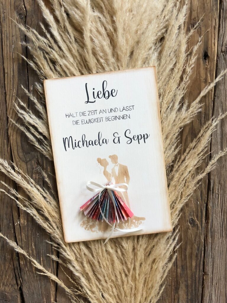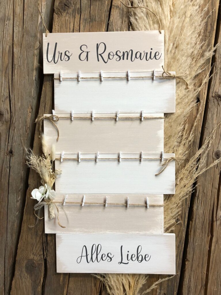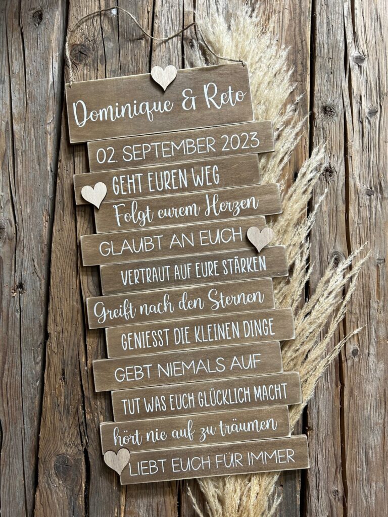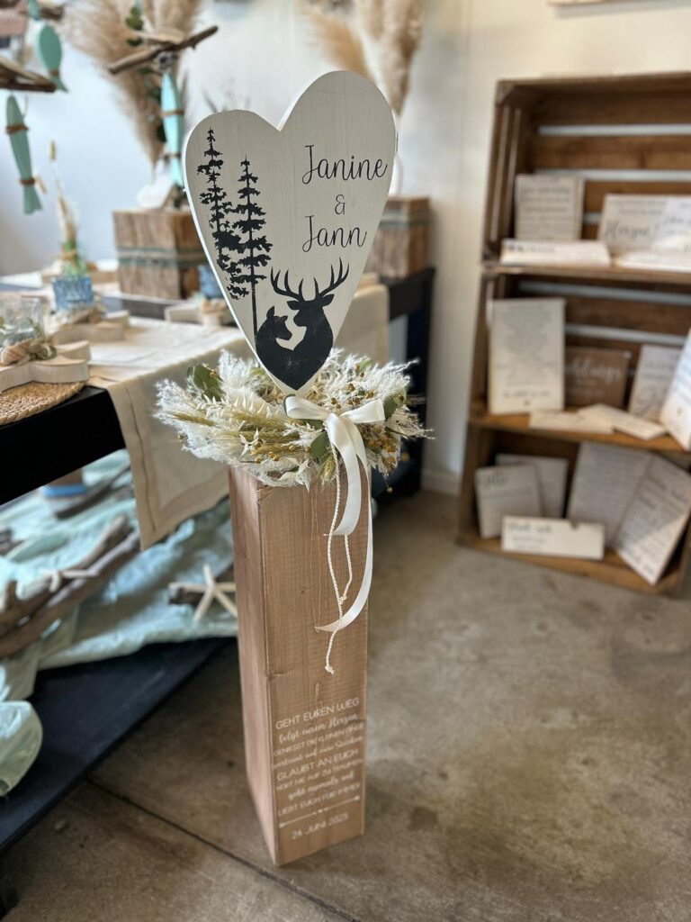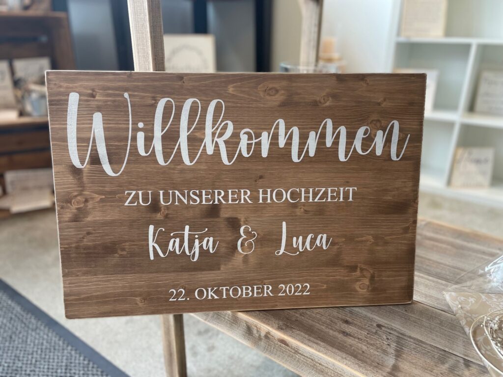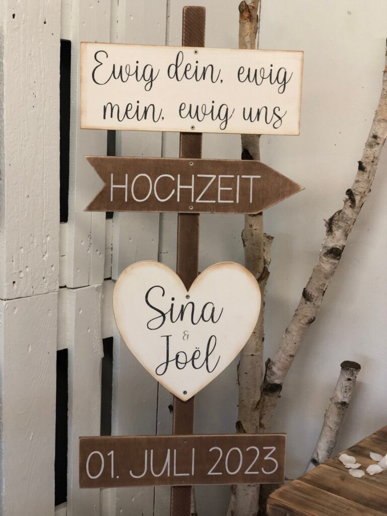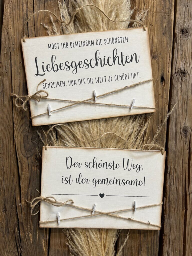 Hier ein paar Geschenkideen für das Brautpaar. Natürlich kannst du auch für deine eigene Hochzeit bei uns das passende Schild, einen Wegweiser oder die Tischdekoration bestellen.